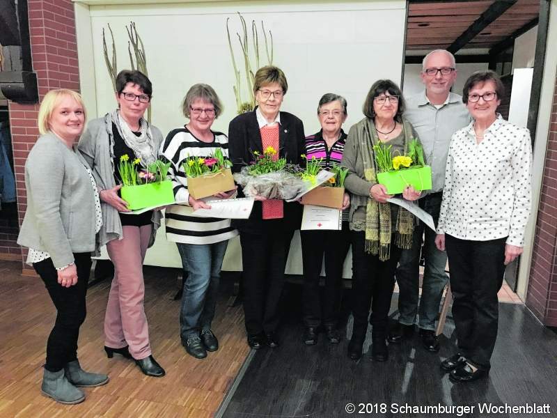 SUTHFELD (jb). Der Ortsverein Suthfeld des Deutschen Roten Kreuzes hat während seiner Jahresversammlung auf ein ereignisreiches Jahr mit viel sozialem Einsatz zurückgeblickt: Über 16 Aktionen hat der Ortsverein 2017 organisiert. Es gab verschiedene Veranstaltungen für die Vereinsmitglieder, vom Ausflug bis zum Klönnachmittag. Daneben wurde einiges für die Senioren geboten, vor allem aber die Jüngsten der Gemeinde konnten sich über viele Aktionen des Vereins freuen. So wird nicht nur regelmäßig mit dem Kindergarten gekocht, auch auf mehreren Festen in der Gemeinde hat der Ortsverein die Kinderbetreuung übernommen. Ein wichtiger Teil der Arbeit des Roten Kreuzes sind die Blutspende-Aktionen, zu denen zweimal im Jahr aufgerufen wird. Virginija Bruns hat mit viel Energie und neuen Ideen die Organisation hierfür übernommen und mit einem neuen Konzept äußerst erfolgreich durchgeführt. Außerdem konnte mit Vereinsgeldern sowohl die Tafel unterstützt als auch Hilfe für hungerleidende Menschen in Afrika geleistet werden. Trotz des erfolgreichen Wirkens vor Ort bestehen nach wie vor Sorgen um den Vorstand. Seit 16 Jahren leitet Marion Strüver den Ortsverein. Sie trat auf der Versammlung zurück. Leider fand sich wieder kein neuer Vorstand. Nach dem einstimmigen Votum der Mitglieder erklärte sich die ehemalige Vorsitzende bereit, noch einmal für zwei Jahre die Geschicke des Vereines zu leiten. Auf der Versammlung wurden zudem treue und langjährige Mitglieder geehrt: Elvira Dammann ist seit 40 Jahren dabei und seit 25 Jahren gehören Johanna Bruns, Ingrid Eick, Monika Hahn-Ebeling, Rita Loewa, Inge Hoffmann, Kornelia Meyer, Christine Stemme, Elke Tadje und Angelika Tegtmeier zum Ortsverein Suthfeld. Foto: privat