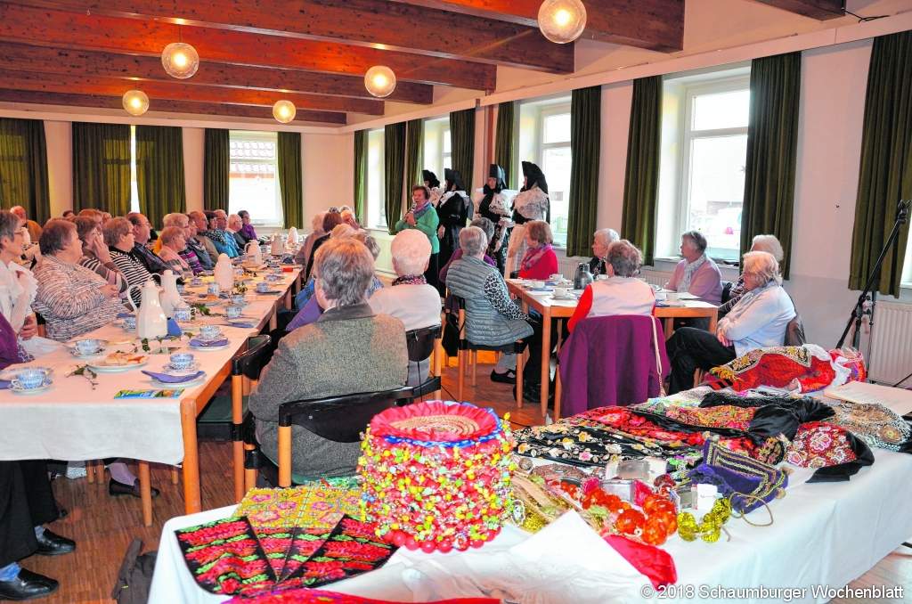 HOHNHORST (mk). Das Café Martini-Team der Kirchengemeinde Hohnhorst begrüßte in Schaumburger Tracht zahlreiche Gäste zu einem Nachmittag mit Sophie Mensching, die zu einem Vortrag zum Thema "Schaumburger Tracht zum Anfassen" eingeladen hatte. Drei Gastpuppen in Schaumburger-Tracht waren ihre Begleiter. Die Kleidung der Gastpuppen stellte die Abtrauerkleidung der dreijährigen Trauerzeit dar. Die im ersten Jahr ganz in schwarz getragene Kleidung stellte durch eine zusätzliche kleine schwarze Schürze, die Pölsch, die Tieftrauerphase dar. Im zweiten Jahr wurde das Ganze durch Perlen und im dritten Trauerjahr durch schwarz-weiße oder silberne Schürzen beziehungsweise Schlipse aufgelockert. Die Tauftracht der Kinder bestand bei den Mädchen aus roten und der Jungen aus schwarzen Kleidern und war mit vielen Spiegeln an der Tracht versehen. Die Kinder, Jungen wie Mädchen, trugen bis zu ihrem fünften Lebensjahr Kleider "Poche", danach wurden die Jungen erst mit Hosen eingekleidet. Die Patenverbindung war eine enge Verbindung auf Lebenszeit. An der Patenschenkung einer Schürze zur Prüfung, konnte man den Wohlstand der Familie erkennen. Wer viel Vermögen besaß, konnte sich mehr Stickereien leisten und Seidengarne verarbeiten. Bis zum Zeitpunkt der Vermählung, war die Ausstattung der Tracht für das ganze Leben angefertigt worden. Man begann schon im Kindesalter mit der Näherei und Stickerei. Wohlhabende Leute konnten sich Bernsteinketten leisten. Die günstigere Ausführung bestand aus Glasperlen. Die Abendmahl- beziehungsweise Konfirmationstracht war komplett schwarz und stellte in der Ausführung mit einer weißen Schürze, die Unschuld der Konfirmandin dar. Dazu waren sie mit zwei großen weißen gewellten Halskrausen, die Hälschen ausgestattet. Anhand der in Tracht anwesenden Personen konnte Mensching die Unterschiede deutlich machen. Ein fröhlicher und informativer Nachmittag, der schnell verging.Foto: privat