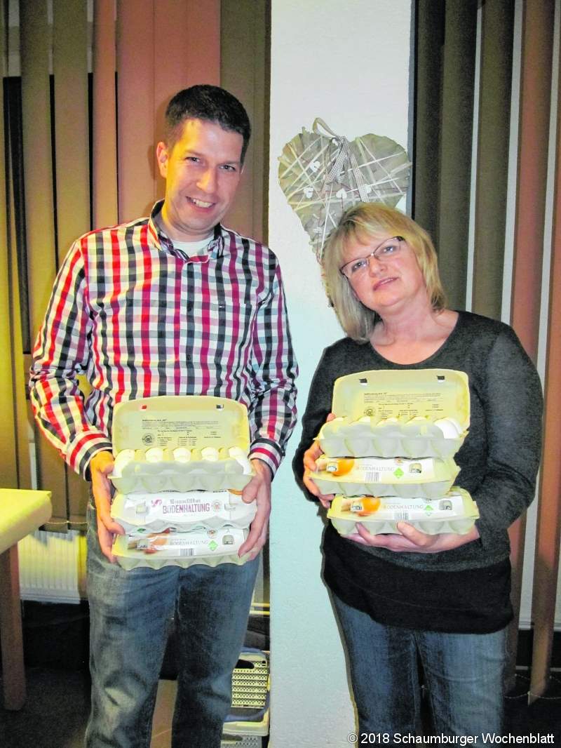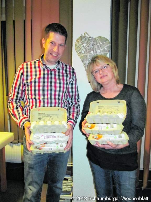 HOHNHORST (jl). Über eine rege Beteiligung am Osterschießen hat sich der Schützenverein Hohnhorst gefreut. Das delikate Ergebnis des Abends: Nach dem Schießen gab es Rührei satt. Im Anschluss erfolgte die Preisverteilung. Je nach Schießergebnis wurden die Eier verteilt. Leer ging aber keiner aus. Die Abräumerin des Abends war Karin Groß mit dem besten Ergebnis und 30 Eiern im Osterkorb. Ihr auf den Fersen Oliver Matthias mit dem zweitbesten Ergebnis und 25 Eiern für sein Osterfest. Damit gebührt Groß und Matthias der Titel "Osterkönige 2018". Mit einem ausgelassenen Beisammensein endete der Abend. Der Vorsitzende Volker Günther nutzte die Gelegenheit und wünschte allen Vereinsmitgliedern "Frohe Ostern". Foto: privat