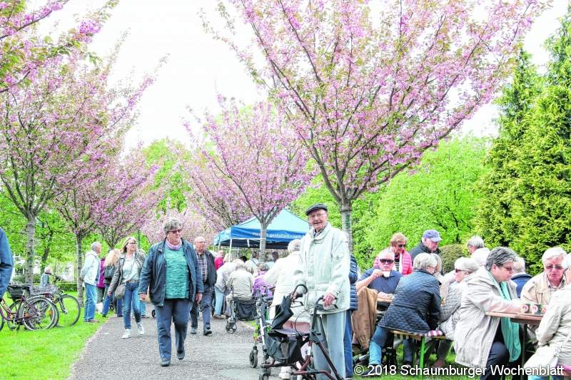 STADTHAGEN (bb). Bei strahlendem Sonnenschein hat sich das zehnte Stadthäger Kirschblütenfest als kleine Jubiläumsveranstaltung eines großen Publikumsandrangs erfreut. Entsprechend oft klingelte es in den Kassen der beiden Veranstalter, des Verkehrsvereins Stadthagen und des Gartenbauvereins. Wie stets werden die beiden Vereine den Erlös des Festes auf den Wallanlagen einem gemeinnützigen Zweck zuführen. Ursprünglich hatten diese die Veranstaltung ins Leben gerufen, um einen Beitrag zur Erneuerung der Zierkirschen-Allee auf dem Wall zu leisten, wie Karl-Heinz Hepe, Vorsitzender des Verkehrsvereins erinnerte. Diese ist mittlerweile abgeschlossen, die zahlreichen Gäste genossen das Fest im Schatten der neu gepflanzten, kräftig blühenden Bäume. Trotz des Abschlusses dieses Projektes, richteten die Vereine das Fest weiter aus. Die Einnahmen aus dem Verkauf von Würstchen, von den zahlreichen Helfern selbst gebackenem Kuchen, Kaffee und weiteren Getränken, sollten der weiteren Verschönerung der Wallanlagen dienen. Die leere Stadtkasse machte den Vereinen 2018 jedoch erstmals einen Strich durch die Rechnung, wie Karl-Heinz Hepe erklärte. Wegen der schwierigen Haushaltslage verschob die Stadt die Planungen für die Aufwertung der Wallanlagen. Entsprechend schieden rasch durch die Festeinnahmen zu verwirklichende Projekte auf dem Wall wie etwa das Pflanzen weiterer Bäume in diesem Jahr aus. So entschlossen sich die Vereine für einen anderen Verwendungszweck, erstmals außerhalb der Wallanlagen. Das eingenommene Geld soll dem Aufbau eines Spielplatzes im Umfeld des Schlossgarten-Cafés dienen, das ja in der zweiten Hälfte des Jahres wieder eröffnet werden soll. Glücklicherweise würden sowohl die Mehrheitsfraktion im Rat als auch "WIR" die Konzepterstellung für die Wallgestaltung in 2019 befürworten, so dass hier in absehbarer Zeit wieder Fortschritte zu erwarten seien, erklärte Karl-Heinz Hepe. Der Vorsitzende hob den Einsatz der zahlreichen ehrenamtlichen Helfer aus den beiden Vereinen hervor und ebenso die Unterstützung der Volksbank Hameln-Stadthagen und der Sparkasse Schaumburg. Beide Geldhäuser hätten mit Spenden dazu beigetragen, dass sich die Vereine neue Zelte zulegen konnten, die stets bei der Ausrichtung des Kirschblütenfestes zum Einsatz kommen werden.Foto: bb