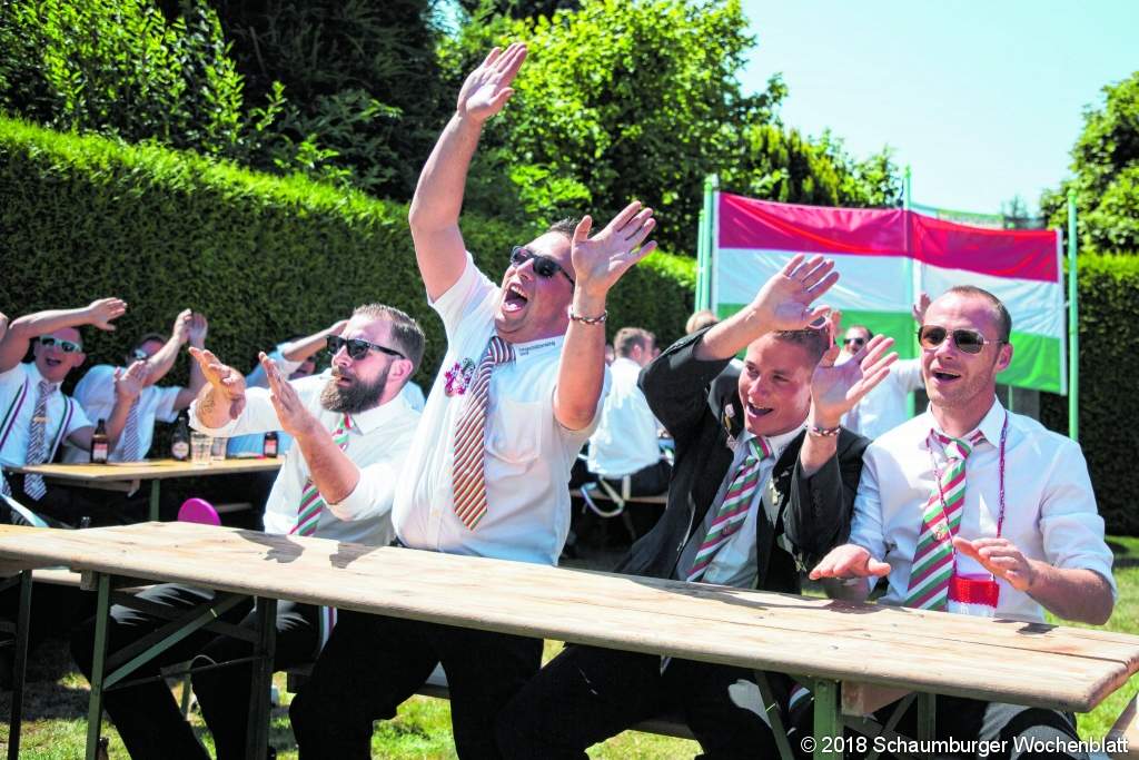 Wenn ein 50-köpfiger Chor heiser statt engelsgleich stimmungsvolle Lieder schmettert und auf der Pferderennbahn - eine bewegungsreiche Gesangsdarbietung - durchstartet, kann dies nur eines bedeuten: Die Knüppelgarde bereitet sich aufs Fest der Feste vor. In diesem Jahr war der Ort des feucht-fröhlichen Vortreffens der Garten von Basti Meier. Grund zur Freude gab es aber auch noch aus einem anderen Grund: "Wir haben dieses Jahr viele Neuzugänge", berichteten Steffen Buller und Lars Frehe. Darunter sei neben den "Wechslern" aus der Jungschützengarde auch eine Handvoll Neulinge.