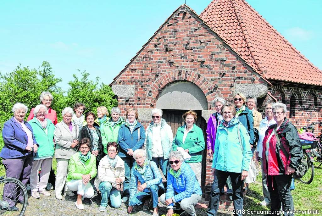 WALTRINGHAUSEN (mk). 15 Landfrauen vom Ortsverein Ohndorf / Waltringhausen holten ihre Fahrräder aus der Garage und machten sich zu ihrer ersten Radtour im Schaumburger Land auf. Es ging von Haste aus am Kanal entlang durch die Wälder in Richtung Rehren/Ottensen. Das Ziel war in Ottensen das Mausoleum. Dort erzählte Sopie Mesching über die Geschichte der Familie Philippsohn und über den Bau des Mausoleums. Das siebeneckige Gebäude ist auffällig mit den so genannten Fehlbrandsteinen aus der Ottenser Dampfziegelei verziert. Ein sehr ungewöhnliches Symbol ist auf dem Dach angebracht. Ein Davidstern mit einem Kreuz, ein Zeichen gleichermaßen für Juden und Christen. Beigesetzt sind dort seit 1960 Karoline Philippsohn, geb Wenthe und seit 1963 Wilhelm Wenthe, Schwager des Bauherrn. Nach dem Interessanten Vortrag lud Mensching noch auf einen kurzen Umtrunk in ihren wunderschönen Garten ein. Zum Abschluss fuhren die Landfrauen in den Pferdestall nach Lindhorst, wo Kaffee und Kuchen wartete. Foto: privat