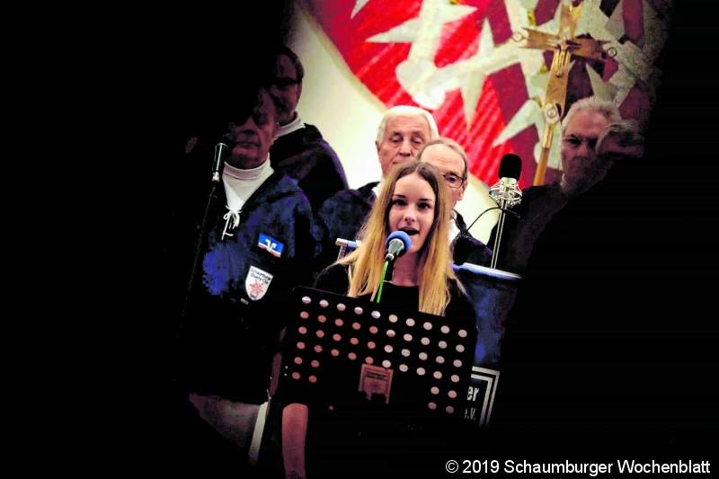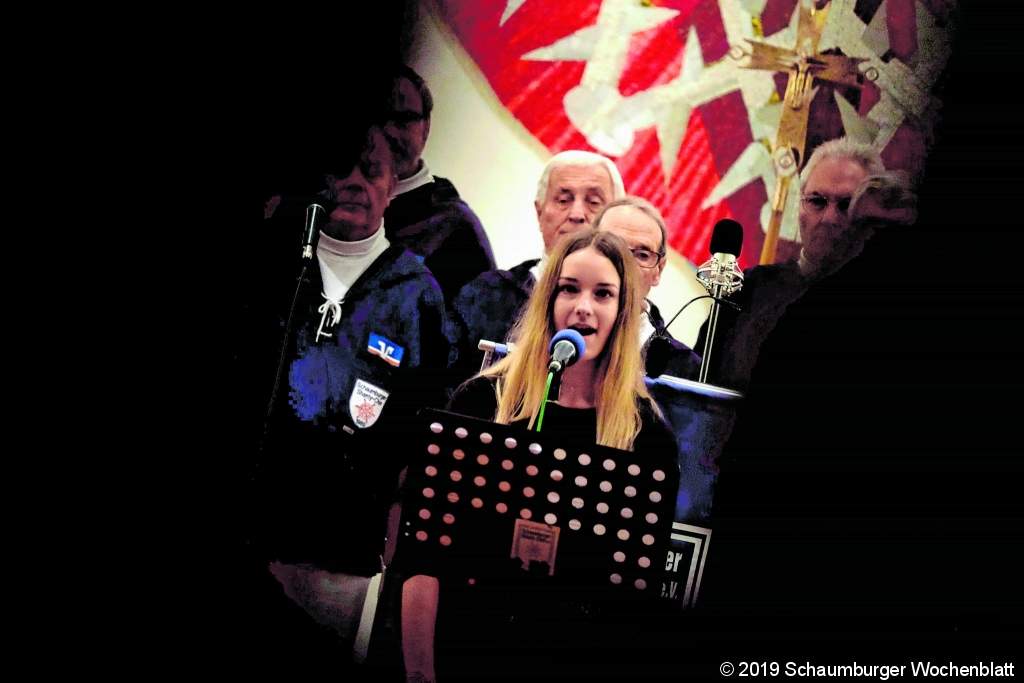 BAD NENNDORF (tr). Auf eine weihnachtliche Seereise hat der Schaumburger Shanty-Chor seine Zuhörer beim maritimem Adventskonzert in der Kirche Maria vom Hl. Rosenkranz in Bad Nenndorf mitgenommen. "Die Seeleute haben sich an den Sternen orientiert - ebenso wie es die heiligen drei Könige in der Bibel tun", stellte Pfarrer Michael Lerche den Zusammenhang zwischen Seefahrt und Kirche her. Apropos heilig: Im Laufe des Konzerts stellten sich noch weitere Verbindungen heraus - so besang der Chor in "Sankt Niklas war ein Seemann" zum Beispiel den Schutzpatron der Seefahrer. Passend zum maritimen Adventskonzert handelt es sich dabei um Nikolaus von Myra, dessen Gedenktag am 6. Dezember mit dem Niklaustag gefeiert wird. Gemeinsam mit Gastsängerin Jolina Jerchel - "eine junge Dame mit einer bezaubernden Stimme", wie die Sänger ihren Gast ankündigten und damit nicht zu viel versprechen sollten - folgten als Höhepunkt des Konzerts vier waschechte Welthits: der Evergreen "Seemann, deine Heimat ist das Meer", der Schlager "Lili Marleen", "Let it be" von den Beatles und "Hallelujah" von Leonard Cohen. Zu guter Letzt verabschiedete der Chor das Publikum mit der Zugabe "Weiße Weihnacht", der deutschen Version des englischen Klassikers "White Christmas". Am morgigen Adventssonntag geben die Sänger ihr letztes Konzert für dieses Jahr: Um 17 Uhr geben sie Shantys und maritime Lieder in der katholischen Kirche St. Barbara in Lindhorst zum Besten. Der Eintritt ist frei. Foto: tr