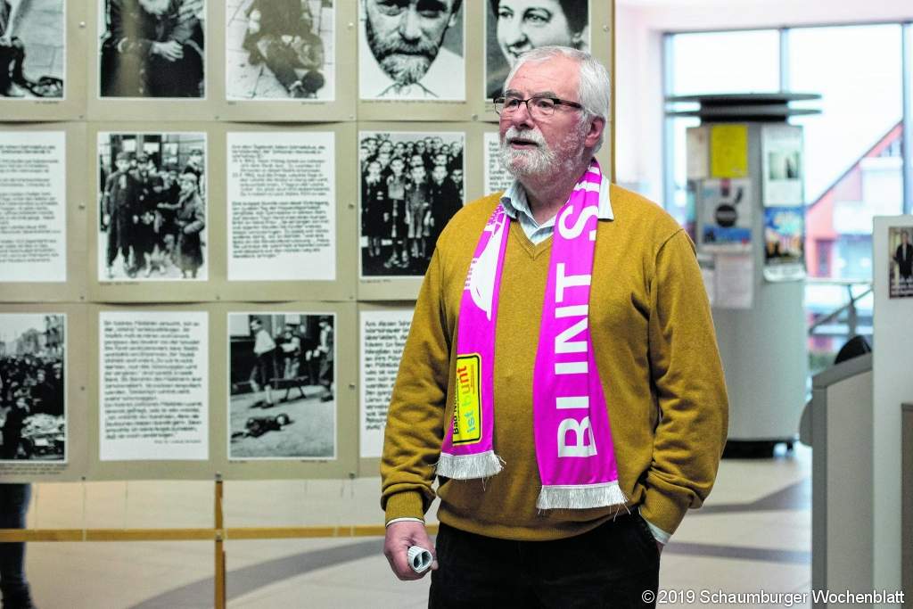 BAD NENNDORF (jl). "Jeder Einwohner ist zu erschießen, Gefangene werden nicht gemacht. Warschau muss ausradiert werden." Welche verheerenden Folgen dieser gemeinsame Befehl Hitlers und Himmlers vom 1. August 1944 hatte, zeigt seit Sonnabend eine Wanderausstellung der Friedensbibliothek Berlin im Foyer der Sparkasse. Unter dem Titel "Der Überfall auf Polen", der sich in diesem Jahr zum 80. Mal jährt, rufen Bilder und Texte nicht nur den Beginn des Zweiten Weltkriegs auf eindringliche Weise in Erinnerung. Auch das Leben im Warschauer Ghetto und der Warschauer Aufstand werden thematisiert. Erinnern, darum gehe es, sagte Winfried Wingert vom Bündnis "Bad Nenndorf ist bunt", dem Initiator der Ausstallung. Sein Vater sei als 23-jähriger Soldat der Wehrmacht dabei gewesen, als Polen am 1. September 1939 nach einem inszenierten Überfall auf den Gleiwitzer Sender durch in polnische Uniformen gezwungene KZ-Häftlinge mit Vernichtung und Chaos überflutet wurde. Aber, so der Vorsitzende: "Er hat sich nie so ausgedrückt" und stattdessen von einer "Teilnahme des Polenfeldzugs" gesprochen - wie so viele. Dass die Wehrmacht am Vernichtungsregime der Nationalsozialisten beteiligt war, sei nach der Rückkehr der Soldaten ins deutsche Reich "undenkbar und unsagbar" gewesen. Umso wichtiger sei es heute keinen Schlussstrich unter das düstere Kapitel der Geschichte zu ziehen, zumal Antisemitismus und Rassismus in der heutigen Gesellschaft wieder verstärkt präsent seien. "Die Erinnerung darf nicht enden, sie muss auch künftige Generationen zu Wachsamkeit mahnen", zitierte er den ehemaligen Bundespräsidenten Roman Herzog. Dem pflichtete auch Marina Jalowaja von der jüdischen Gemeinde bei -"sonst ist eine Einschätzung der heutigen Realität nicht möglich". Sie erinnerte an die knapp 60 Millionen Menschen, die während des sechs Jahre dauernden Krieges ihr Leben verloren haben - durch eine von der "geistigen Elite" angestifteten "Mordmaschinerie". Polen sei das Land, das am längsten unter dem Zweiten Weltkrieg leiden musste, wie Jochen Schmidt von der Friedensbibliothek erklärte. Ein Drittel der Vorkriegsbevölkerung sei umgebracht worden. Heute wüssten viele gar nichts mehr zu diesem Thema. "Deswegen muss man diese Bilder zeigen und mit dem Thema in Schulen, in die Orte, in Bürgerhäuser und Kirchen gehen", so Schmidt. Zu sehen ist die Ausstellung im Foyer der Sparkassenfiliale in der Hauptstraße noch bis zum 15. Februar. Foto: jl "Bad Nenndorf ist bunt"-Vorsitzender Winfried Wingert eröffnet die Ausstellung im Sparkassenfoyer: "Die Erinnerung darf nicht enden."