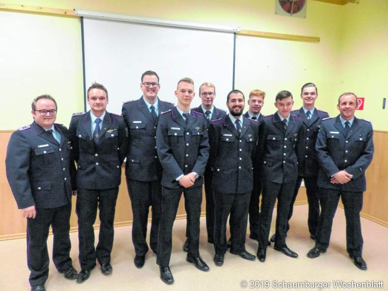 WALTRINGHAUSEN (em). Bewegende Momente: Minutenlangen Applaus und Standing Ovation bekam Ortsbrandmeister Kim Röhrbein zu seiner Verabschiedung auf der Jahreshauptversammlung der Feuerwehr Waltringhausen. Er verlässt nach knapp 30 Jahren die Feuerwehr Waltringhausen, aufgrund von privaten Veränderungen und eines Umzugs. Nach der freiwilligen Entlassung aus dem Ehrenamt, lobte Samtgemeindebürgermeister Mike Schmidt, Kim Röhrbein für die gute und stets zuverlässige Arbeit. Joachim Muth betonte in seiner Grußrede, dass man sich jederzeit auf den Stellvertretenden Kreisbereitschaftsführer, sowohl fachlich als auch menschlich immer verlassen konnte. Lars Hecht ließ es sich nicht nehmen, einen Rückblick auf die letzten gemeinsamen 30 Jahre vorzunehmen. Seit 2011 bekleidete er das Amt des Ortsbrandmeisters, zusammen mit seinem Stellvertreter Lars Hecht, der von den aktiven Kameraden als neuer Ortsbrandmeister gewählt wurde und nun vom Samtgemeinderat bestätigt werden muss. Als Abschiedsgeschenk bekam Röhrbein von der Mannschaft die erste Tragkraftspritze der Feuerwehr Waltringhausen geschenkt, mit der er einige Stunden verbrachte. Im Jahr 2018 fuhr die Feuerwehr Waltringhausen zu insgesamt 27 Einsätzen, wovon wieder ein Großteil Brandmeldeanlagen in Bad Nenndorf waren. Ein großes Kompliment für die schnelle Einsatzbereitschaft beim Moorbrand in Meppen, richteten Kim Röhrbein und Abschnittsleiter Joachim Muth an die Mannschaft. Im vergangenen Jahr bekam die Ortsfeuerwehr eine neue Wärmebildkamera, mit der die Kameraden in Zukunft sowohl Personen als auch Wärmeentwicklungen leichter und schneller erkennen können. Zu Oberfeuerwehrmännern wurden Christoph Bittner, Malte Kaps und Nico Lührsen befördert. Ilhan Kaplan ist nun Hauptfeuerwehrmann und Sascha Wanjura bekam die Beförderung zum Ersten Hauptfeuerwehrmann.In der Jugendfeuerwehr dreht sich das Personalkarussell. Nachdem der bisherige Jugendwart Steffen Preußing einstimmig zum Stellvertretenden Ortsbrandmeister gewählt wurde, übergibt er nun nach 15 Jahren das Amt an Ilhan Kaplan. Foto: privat 496 Jahrelang leitete das Duo die rührige Ortswehr: Kim Röhrbein (li.) und Lars Hecht. 491 Emotionaler Abschied: Kim Röhrbein zieht die letzte Bilanz. 512 Stolz: Die Beförderten der Ortswehr mit Joachim Muth (li.) und dem neuen OrtsbrandmeisterLars Hecht (re.).
