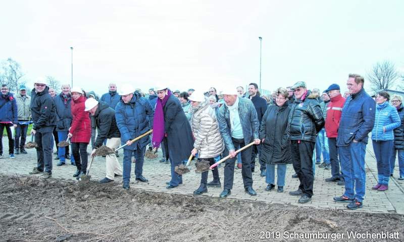 REHREN A/R (pp). Was lange währte, kommt nun zu einem guten Ende. Mit den offiziell ersten Spatenstichen der Verantwortlichen zum Bau des Dorfgemeinschaftshauses wird die Dorfentwicklung in Rehren in ihre letzte Runde gehen. Im Beisein zahlreicher Rehrener überreichte Niedersachsens Ministerin für Europaangelegenheiten und Regionale Entwicklung Birgit Honé das offizielle Förderschild an Bürgermeister Cord Lattwesen. Bis Mitte 2020 sollen die Bauarbeiten abgeschlossen sein und die Bürgerinnen und Bürger mit dem "Haus der GemeinsamZeiten"über ein neues soziales und kulturelles Zentrum verfügen. "Das Dorfgemeinschaftshaus in Rehren bietet durch die vielfältigen Angebote zahlreicher Vereine für alle Generationen etwas. Das unterstützen wir als Land gerne. Doch Geld allein reicht nicht, um das Projekt mit Leben zu füllen. Daher möchte ich mich heute auch ganz herzlich bei Ihnen für Ihr ehrenamtliches Engagement bedanken", betonte Honé, die von der Landesbeauftragten Heike Fliess begleitet wurde. "Wenn sie später bei einem Bier im Dorfgemeinschaftshaus sitzen, denken sie bitte daran, dass das durch die Europäische Union möglich geworden ist", verwies die Ministerin auf die EU-Mittel zur integrierten ländlichen Entwicklung (ZILE) in Höhe von rund 500.000 Euro. Das Dorfgemeinschaftshaus wird in Form eines Anbaus an das Sportheim des MTV Rehren realisiert. Dabei legt die von Ingrid Möller geleitete Dorfgemeinschaft besonderen Wert auf eine nachhaltige Bauart, die sich in der geplanten Holzrahmenbauweise wiederspiegelt. Im Hauptteil des Gebäudes sind zwei Räume vorgesehen, die zusammen Platz für 144 Sitzplätze bieten. Ein Tresenbereich mit Küche sowie eine Terrasse sind ebenfalls in der Planung enthalten. Betreut wird der Bau durch Architekt Uwe Brinkmann. Die Gemeinde beteiligt sich an den Baukosten mit 185.000 Euro, die Rehrener werden die Maßnahme durch Eigenleistung unterstützen. Foto: pp