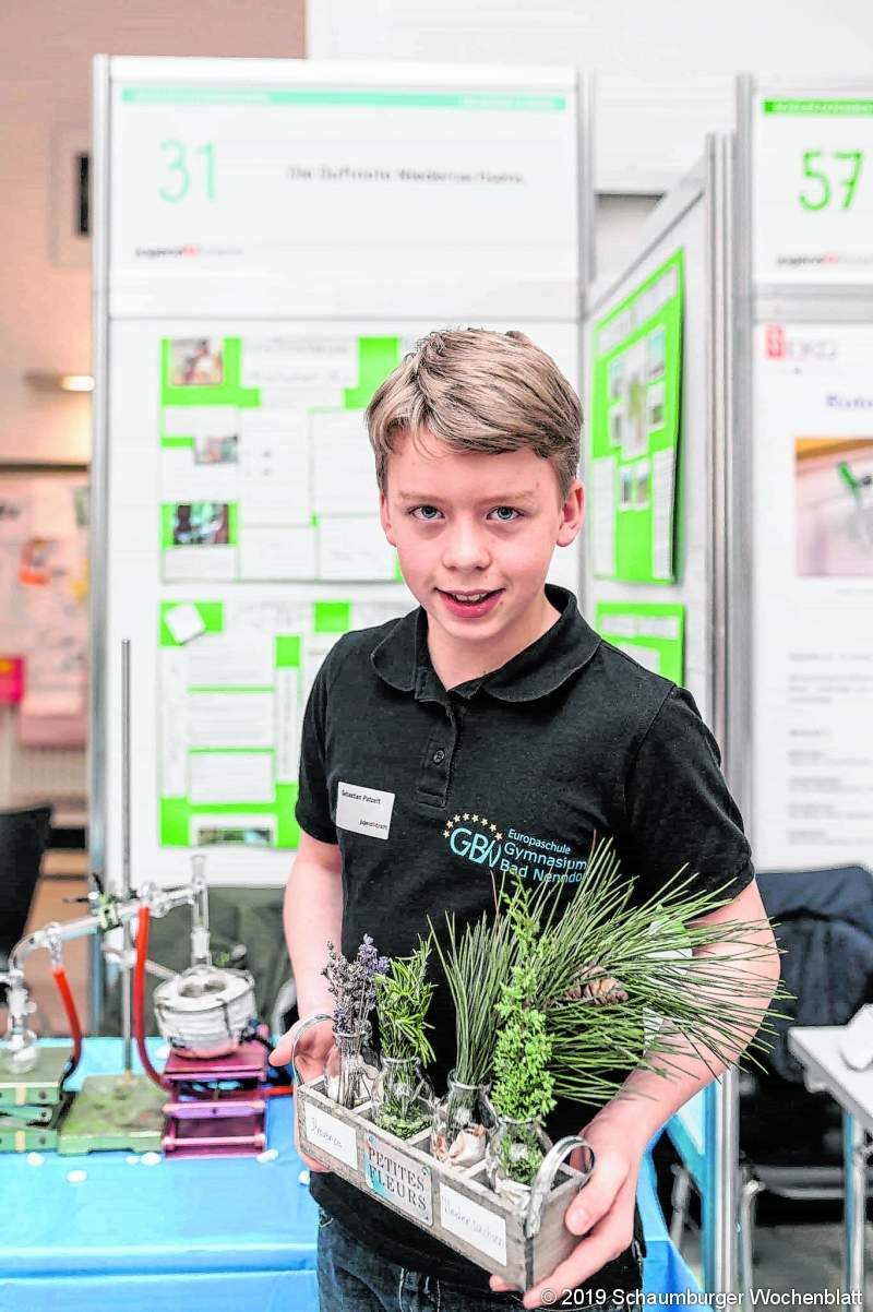 BAD NENNDORF (jb). 647 Schülerinnen und Schüler im Alter von 9 bis 14 Jahren haben in Niedersachsen in der Juniorensparte an Deutschlands bekanntestem Nachwuchswettbewerb teilgenommen. Ihre wissenschaftlichen Projekte stellten sie im Vorfeld des Landesentscheids in acht Regionalwettbewerben vor. 43 Forscherteams mit zusammen 71 Schülerinnen und Schülern schafften es in den Landesentscheid, der in Oldenburg unter dem Motto "Frag Dich!" bereits zum 16. Mal stattfand. Die Arbeiten der jungen Forscherinnen und Forscher in sieben naturwissenschaftlichen, mathematischen und technischen Disziplinen wurden von einer jeweils vierköpfigen, fachkundigen Jury begutachtet. Überzeugen mussten die Schülerteams nicht nur mit ihren Untersuchungen und Experimenten, sondern auch mit der Präsentation ihrer Forschungsarbeiten. Die Sieger konnten sich über Geld- und Sachpreise freuen. Die ersten Plätze wurden mit je 150 Euro dotiert, darüber hinaus gab es zweite und dritte Plätze sowie Sonderpreise. Sebastian Patzelt vom Gymnasium Bad Nenndorf konnte beim Landeswettbewerb den 1. Preis im Fach Chemie sowie den Sonderpreis für den schönsten Stand für sich behaupten. Sein Projekt hieß die Duftnote Niedersachsens. Hier hat er acht typische, intensiv riechende niedersächsiche Pflanzen, die die verschiedenen Landschaftsregionen Niedersachsens repräsentieren, zu einem außergewöhnlichen wohlriechenden Parfüm zusammengestellt. Die Duftnote riecht süßlich-waldig und besteht sogar aus ätherischen Ölen, die das Wohlbefinden steigern. Der junge Parfümhersteller erkundete in einem Sommerurlaub in der südfranzösischen Provence einen Wochenmarkt und war fasziniert von den verschiedenen Gerüchen frischer provenzialischer Pflanzen, die sich zu einem eindringlichen Gesamtgeruchseindruck verbanden. Die Duftnote Niedersachsen entstand durch Extraktion/Destillation ausgewählter Pflanzenteile und ihrer bewussten Mischung mit dem Ziel, eine angenehm duftende Heimatnote zu kreieren. Foto: privat