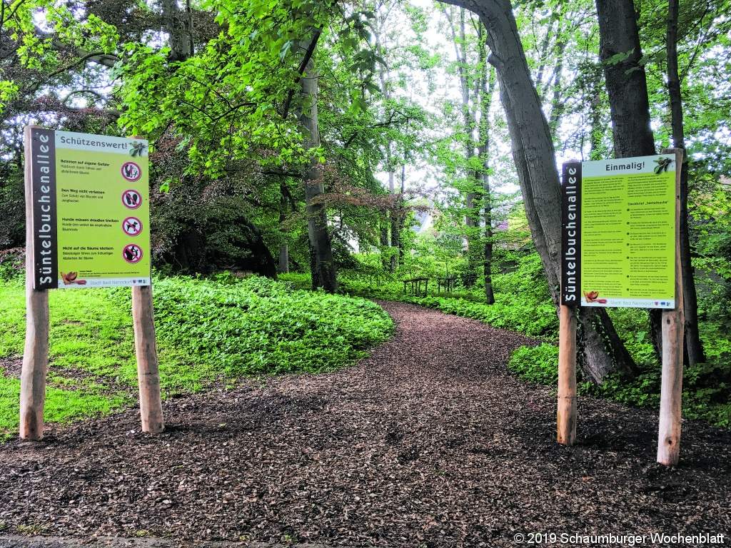 BAD NENNDORF (jl). Sie sind da, die neuen Hinweistafeln an den Zugängen zur Süntelbuchenallee. Der Bauhof stellte dieser Tage die Schilder auf, die auf die Schutzbedürftigkeit der alten Riesen hinweisen. Hintergrund ist der schlechte Zustand der Bäume. Nach Einschätzung einer Sachverständigen sterben einige Exemplare ab, andere sind erheblich beschädigt. Informationen dazu und zur Einmaligkeit der Süntelbuchenallee finden Parkbesucher künftig auf den besagten Tafeln. Der Ansatz: Der Bevölkerung muss auch erklärt werden, warum zwischen den kreuz und quer wachsenden Bäumen nicht gespielt und auf den Ästen nicht herumgeklettert werden darf. Ende April waren bereits in der gesamten Allee Stämme mit Verbotsschildern installiert worden. Darauf: durchgestrichene Fußspuren, die Spaziergänger darauf aufmerksam machen, dass sie bestimmte Bereiche nicht zu betreten oder gar auf die Bäume zu klettern haben. Sie sollen zum Schutz der Wurzeln auf den vorgegebenen Wegen bleiben. Die Schilder sind jedoch nur eine Übergangslösung, um ein Bewusstsein für die Problematik zu schaffen. Es soll noch ein umfangreiches Konzept geben, um die Allee zu schonen. Foto: privat