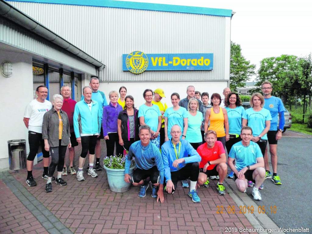 BAD NENNDORF (jb). Erstmalig haben sich Läufer des VfL Bad Nenndorf und der Skigemeinschaft Nordschaumburg zu einem gemeinsamen Lauf in der Morgendämmerung getroffen. Kurz vor Ende der kürzesten Nacht des Jahres starteten die 25 Aktiven um 4.45 Uhr zu Strecken zwischen fünf und elf Kilometern. Beim Lauf durch die Ohndorfer Feldmark erlebten sie einen malerischen Sonnenaufgang. Im Anschluss stärkten sich alle Sportler beim gemeinsamen Frühstück unter freiem Himmel. Die Initiatoren Sylvia Zakalowski und Helge Stille waren mit der Resonanz sehr zufrieden, was auch mit dem traumhaften Wetter zusammenhängen dürfte. Sie können sich eine Wiederholung im kommenden Jahr daher gut vorstellen. Foto: privat