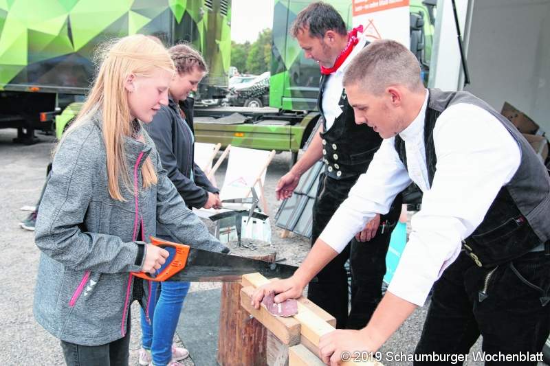LANDKREIS/STADTHAGEN (bb). Das Bildungsbüro des Landkreises lädt für Dienstag, den 3. September, zum zentralen Berufs- und Studieninformationstag in die Festhalle nach Stadthagen ein. Von 10 Uhr bis 15 Uhr haben junge Leute, Eltern und Lehrkräfte hier die Möglichkeit, sich einen sehr anschaulichen und breitgefächerten Einblick in die Möglichkeiten zum Berufseinstieg zu verschaffen. Rund 90 Firmen und Institutionen präsentierten sind an diesem Tag in und im Umfeld der Festhalle an der Enzer Straße und informieren über Ausbildungs-, Studien-, und Qualifikationsgänge. Die Besucher können mit den Ausstellern ins Gespräch kommen und erste Kontakte beispielsweise für ein Praktikum knüpfen. Das Angebot richtet sich an Schüler, die sich ihrem Abschluss annähern. Ebenso an junge Leute, welche die Schule verlassen haben und sich beispielsweise im Rahmen eines Studienabbruchs umorientieren wollen. Neben großen Unternehmen der Weserberglandregion werden sich unterschiedliche Schulen, Hochschulen und Akademien mit ihrem Ausbildungs- und Studienangebot präsentieren. Daneben gibt es wertvolle Tipps zum Thema Bewerbung, Immatrikulation und zu Alternativen nach dem Schulabschluss (Freiwilligendienste im In- und Ausland).Das Ausstellerverzeichnis und die Messebroschüre können auf www.schaumburg.de/berufs-und-studieninformationstag-2019 eingesehen werden. Das Finanzamt, die Schornsteinfegerinnung, Industrieunternehmen, das KFZ-Handwerk, erstmals die Leibniz-Universität Hannover und viele, viele Aussteller mehr geben einen äußerst breitgefächerten Überblick über Ausbildungs- und Studienangebote. Beispielsweise wird der Multimedia-Truck für Berufsbilder im Maler- und Lackiererhandwerk heranrollen. Praktisches Ausprobieren wird überhaupt eine große Rolle spielen. Schweerbau präsentiert einen Fahrsimulator für Lok-Fahrten, die Dachdeckerinnung lädt zum Schieferschlagen, die Friseurinnung zum Schnippeln an Übungsköpfen. Foto: bb