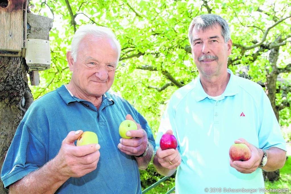 STADTHAGEN/LANDKREIS (bb). Das Team des Gartenbauvereins Stadthagen und Umgebung wird zum Stadthäger Apfelmarkt wieder die Obstpresse in die Kreisstadt holen. Wer am 19. Oktober Äpfel oder Quitten zu Saft verarbeiten lassen will, kann sich ab jetzt für einen Termin anmelden. Anders als 2018 sei die Erntemenge auf den Apfelbäumen in diesem Jahr nur gering, wie Jürgen Damke, Vorsitzender des Gartenbauvereins, und der Ehrenvorsitzende Dieter Kellermeier erklärten. Deshalb werde die Presse nur für einen Tag, nämlich für Sonnabend, den 19. Oktober geordert. An diesem Tag wird die Obstpresse von 9 Uhr bis 18 Uhr auf dem Kirchhof in Stadthagen stehen, um Äpfel und Quitten zu Saft zu quetschen. Weil es einigen organisatorischen Aufwand kostet, alle Presswünsche zu bearbeiten und dabei längere Wartezeiten zu vermeiden, ist eine Voranmeldung nötig. Diese sollte bis zum 6. Oktober unter 05724/4554 bei Jürgen Damke oder unter 05721/4494 bei Dieter Kellermeier (möglichst unter ungefähren Kilo-Angaben) erfolgen. Das Pressen lohnt sich erst bei einer Menge von 20 Kilogramm. Die Gebühren bleiben wie im Vorjahr. Noch vorhandene Behälter können wiederbenutzt werden. Der vom Gartenbauverein mit Unterstützung des Stadtmarketingvereins Stadthagen und der Stadt ausgerichtete Apfelmarkt findet mit abwechslungsreichem Programm am 19. und 20. Oktober auf dem Marktplatz statt.Foto: bb
