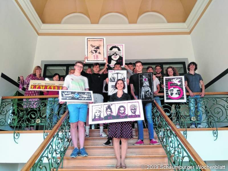 STADTHAGEN (tr). Unter der Leitung ihrer Kunstlehrerin Dr. Ekaterina Tangian hat ein Oberstufenkurs des Ratsgymnasiums sich intensiv mit einzelnen Artikeln der Menschrechtskonvention auseinandergesetzt und sie künstlerisch in beeindruckender Weise sowohl plastisch als auch in Linoldrucken dargestellt. Die Jugendlichen haben sich dabei tiefgehend mit den Grundwerten unserer Gesellschaft auseinandergesetzt. Die dabei entstandenen Werke fanden das Interesse der Amtsgerichtsdirektorin Regina Benz, sodass sie nun auf zwei Etagen in den Fluren des Stadthäger Gerichtsgebäudes einen würdigen Platz gefunden haben. Foto: privat BUZ