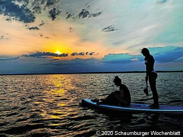 A: Meine beiden Töchter beim Stand Up Paddling auf dem Steinhuder Meer. B: Ostenmeer Steinhude. C: Paddeln auf dem Ostenmeer Steinhude. D: Strand in Scharbeutz. E: Zuhause in Haste. F: Radtour von Haste nach Krautsand im Aller-Leine-Tal. Tobias Binne, Haste