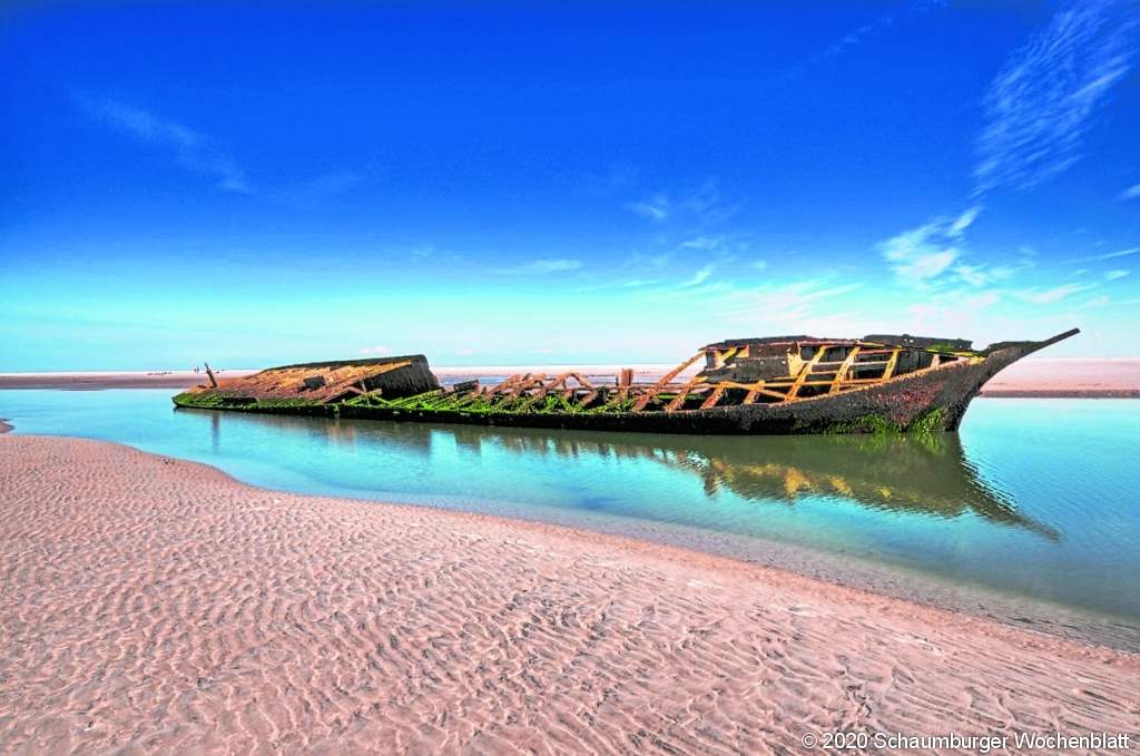 Schiffswrack der Ulpiano im Wattenmeer bei Pellworm. Es sank bei seiner Überführung von England 1870 nach Spanien. Wolfgang Stemme (Wunstorf).