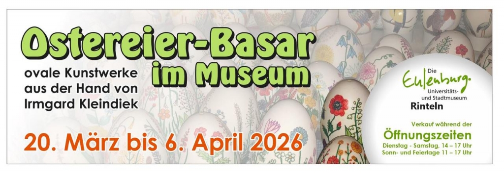 "1000 fantastische Ostereier! Ein einmaliger Basar mit ovalen Kunstwerken aus der Hand von Irmgard Kleindiek" - ACHTUNG: Montags geschlossen!