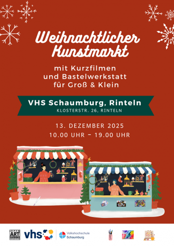 Tauchen Sie ein in den künstlerischen Weihnachtsmarkt in Rinteln - gestalten Sie weihnachtliche Dekorationen und erleben Sie den ganzen Tag über Kurzfilme für Kinder und Erwachsene.